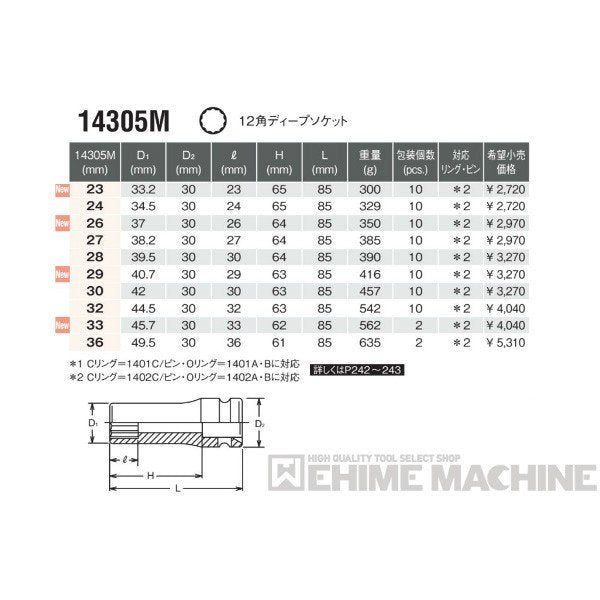 コーケン 14305M-11 12.7sq. インパクトソケット 12角ディープソケット Ko-ken 工具