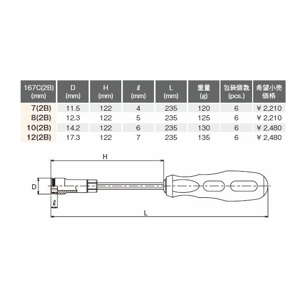 167C-2B 差替ナットグリップドライバー各サイズに追加して、ご入用のサイズだけ補充するのに便利です。
