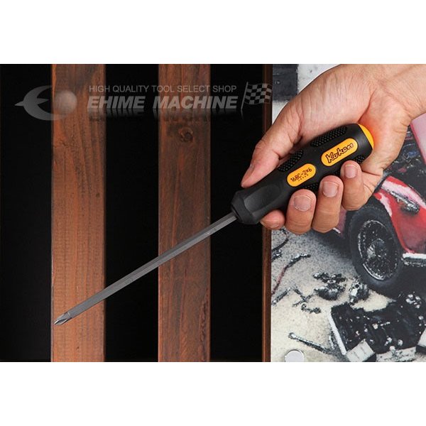 ビット部の六角対辺は約6.35mm(1/4)です。長めのビット交換式差し替えドライバーです。
