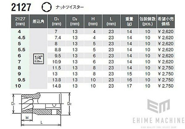 コーケン 2127-10 6.3sq. 10mm ナットツイスター Ko-ken 工具