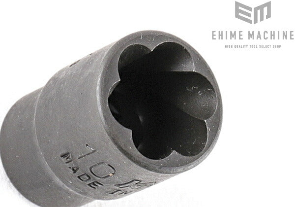 特殊なツイスト形状により、完全に角が潰れてしまったようなボルト・ナットにもガッチリと喰いつき、簡単に取り外すことができる取り外し専用ソケットです。