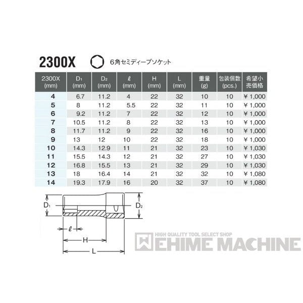 コーケン 2300X-11 6.3sq. ハンドソケット 6角セミディープソケット Ko-ken 工具