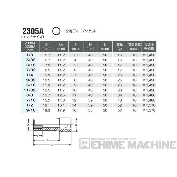 コーケン 2305A-9/16 インチサイズ 6.3sq. ハンドソケット 12角ディープソケット Ko-ken 工具