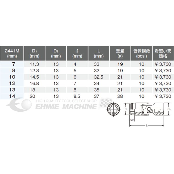 コーケン 6.3sq. ナットグリップユニバーサルソケット 2441M-12 Ko-ken 工具