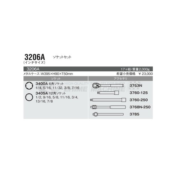 ・6角ソケット (3400A-1/4、5/16、11/32、3/8、7/16)