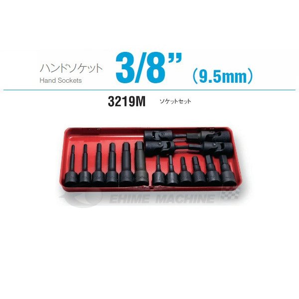■型式:3219M ■メーカー:ko-ken(コーケン/株式会社山下工業研究所) ■メタルケースサイズ:W240xH100xT32mm ■セット内容:16ヶ組 ・ユニバーサルヘックスビットソケット(3430M-5、6、8、10) ・ヘックスビットソケット(3012M-52-4、5、6、8、10、12) ・ヘックスビットソケット(3012M-75-4、5、6、8、10、12) ■差込角:9.5sq.(3/8) ■重量:1,425g