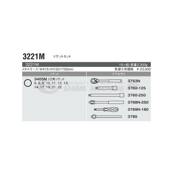 ・12角ソケット(3405M-6、8、9、10、11、12、13、14、17、19、21、22)