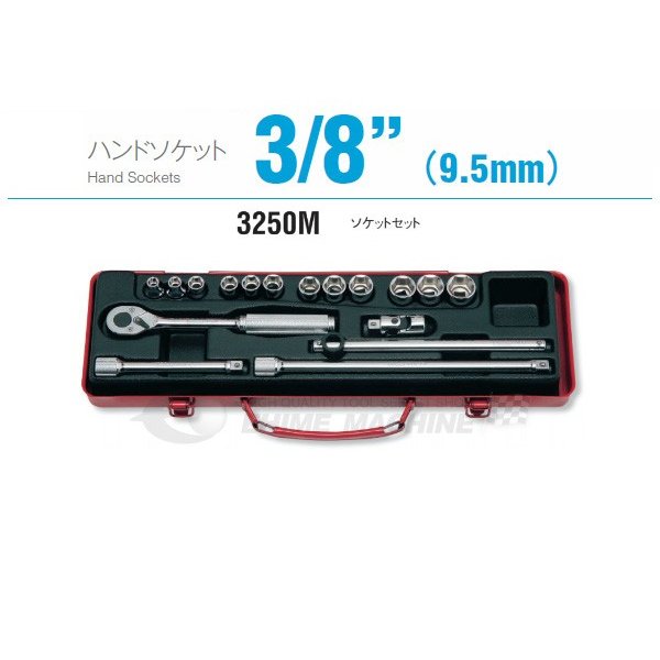 ■型式:3250M ■メーカー:ko-ken(コーケン/株式会社山下工業研究所) ■メタルケースサイズ:W415xH120xT50mm ■セット内容:17ヶ組 ・6角ソケット (3400M-7、8、10、11、12、13、14、15、16、17、18、19) ・ラチェットハンドル(3753N) ・エクステンションバー(3760-125、250) ・ユニバーサルジョイント(3770) ・T型スライドハンドル(3785) ■差込角:9.5sq.(3/8) ■重量:2,200g