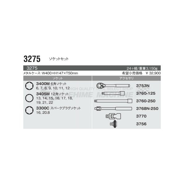 ・12角ソケット(3405M-13、14、15、16、17、18、19、21、22)