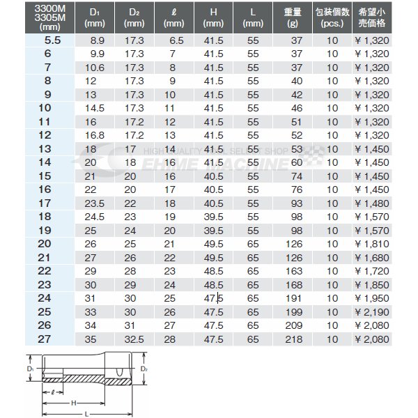 コーケン 9.5sq. 12角ディープソケット 3305M-18 Ko-ken 工具