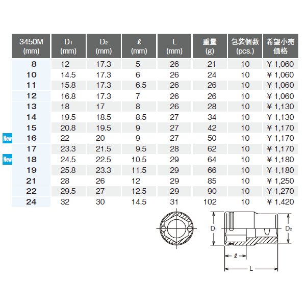 コーケン 9.5sq. ナットグリップソケット 3450M-21 Ko-ken 工具
