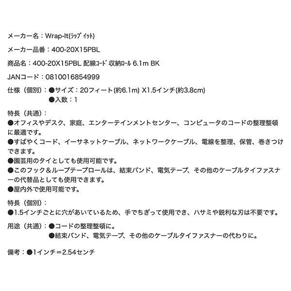 商品名:400-20X15PBL 配線コード収納ロール 6.1m BK