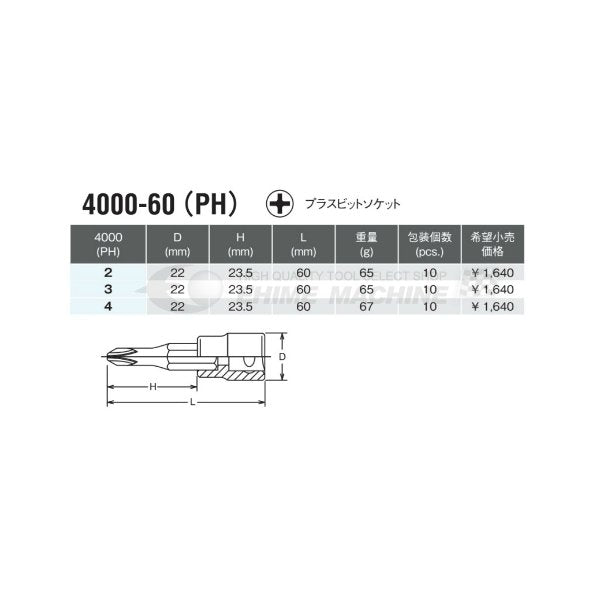コーケン 4000-60(PH)2 12.7sq. ハンドソケット プラスビットソケット Ko-ken 工具