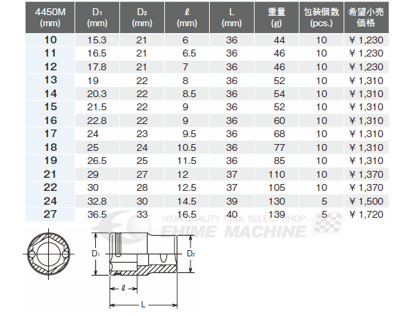 ■型式:4450M-10 ■メーカー:ko-ken(コーケン/山下工業研究所) ■差込角:12.7sq. ■全長:36mm ■重量:44g