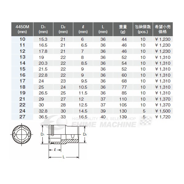 ■型式:4450M-27 ■メーカー:ko-ken(コーケン/山下工業研究所) ■差込角:12.7sq. ■全長:40mm ■重量:139g