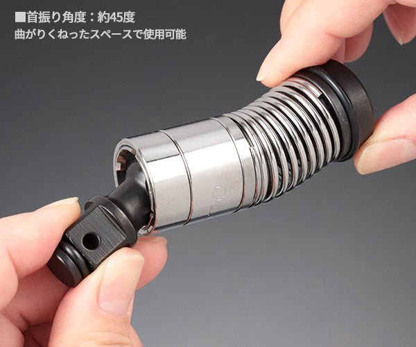 狭くて真っ直ぐ工具が入らない場所でも、自在に曲げて対応できるフレキシブルエクステンションです。