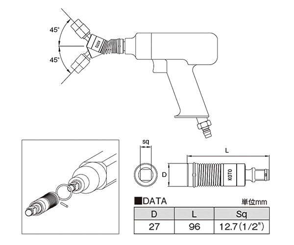 頭部はピン止め構造を採用し、インパクトレンチでの使用にも対応。