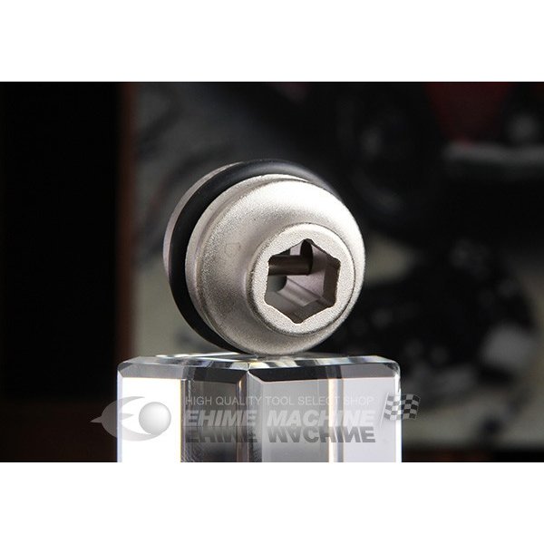 Oリング仮置き構造により、レンチにインパクト用ソケットを着脱する際にOリングを一旦溝に仮置くことで作業性を向上させています。