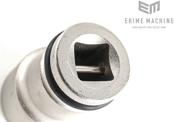 Oリング仮置き構造により、レンチにインパクト用ソケットを着脱する際にOリングを一旦溝に仮置くことで作業性を向上させています。