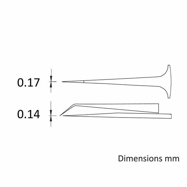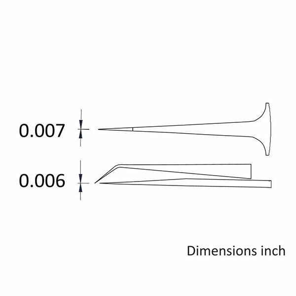 先端の特殊な形状により毛細管現象が抑制され、ピンセットの先端に沿って液体が上向きに流れるのを防ぎます。
