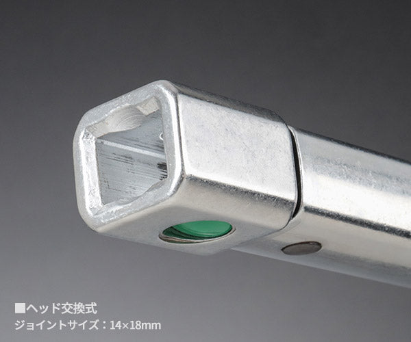 ヘッド交換式ジョイント(14×18mm)を採用しているため、用途や現場に応じて交換ヘッドを使い分けることも可能です。サスペンションや足回り、エンジン周りなど、重トルク帯の締め付けに幅広く対応します。