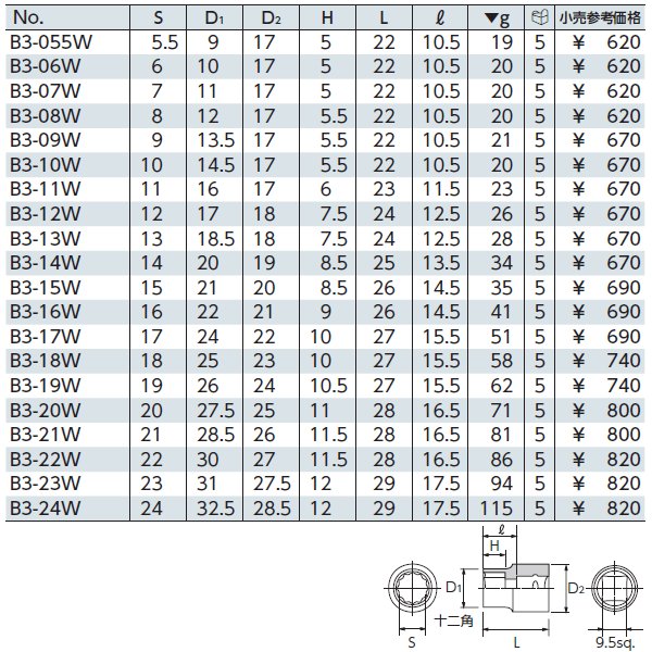 KTC B3-23W サイズ23mm 9.5sq.十二角ソケット
