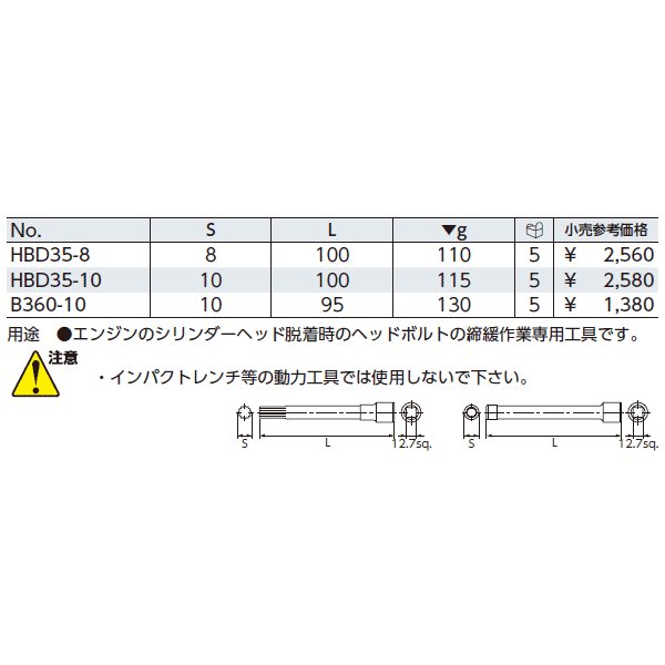 エンジンのシリンダーヘッド脱着時のヘッドボルトの締緩作業専用工具です。