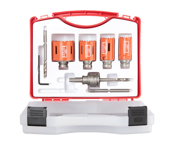 セット内容:ホールソー29、32、38、50mm、10mmストレートアーバー、予備センタードリル、コア押し出し棒