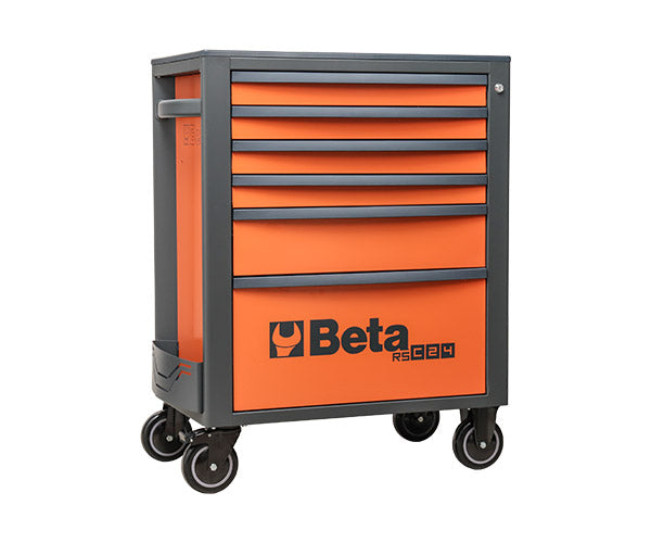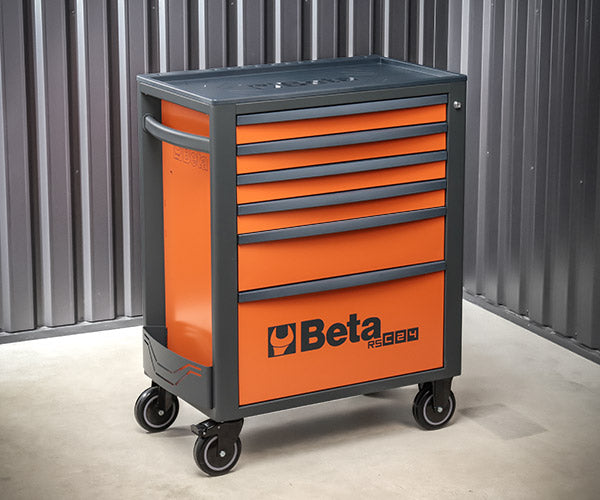 RSC24/6-FO は、イタリア・Betaのストレージライン「RSC24」シリーズに属する6段ツールトロリーです。4面すべてをブランドカラーのオレンジで統一したこのモデルは、工場やガレージに置いた瞬間から視線を奪う、ベータの世界観を凝縮した1台。「収納」という役割だけでなく、「所有する喜び」まで満たしてくれるストレージを求める方にぴったりです。