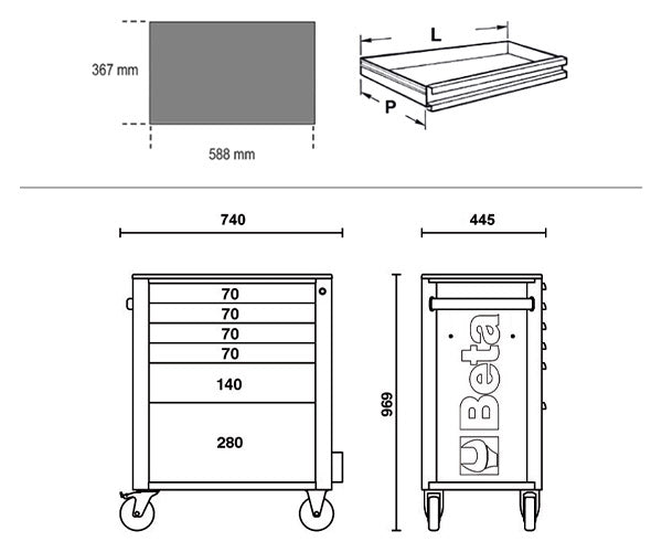 | 引き出し構成 | 高さ70mm×4段/高さ140mm×1段/高さ280mm×1段(全段 588×367mm) |