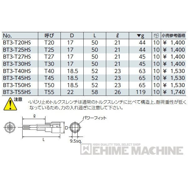 KTC 9.5sq.ショートT型いじり止めトルクスビットソケット BT3-...