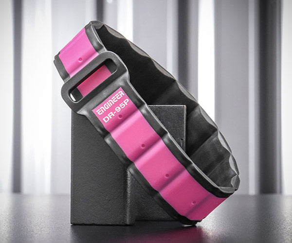 ピンク×ブラックの視認性の良いカラーで、工具箱の中でも見つけやすく、キャビネットや車体に貼り付けて工具やビットの一時置きにも活躍します。