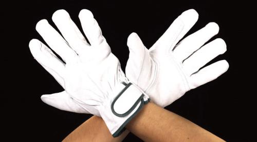 ●材質…表:豚革、裏:綿●手のひら当て付●天然皮革ですから通気性があり、むれにくい。●マジックテープ止●用途…一般作業、鉄鋼、土木、建築、自動車関連業用●サイズ…M●全長…215mm●厚み…0.7mm●掌周り…200mm●中指長さ…90mm