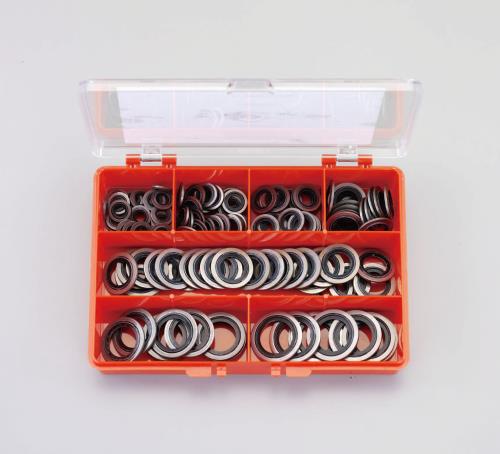 ●<セット内容>…ボルトサイズ、外径×厚み(入数):M8、14.00×1.00mm(25)M10、16.00×1.50mm(25)M12、18.00×1.50mm(15)M16、24.00×1.50mm(15)M18、26.00×1.50mm(25)M22、30.00×2.00mm(10)M24、32.00×2.00mm(10)●材質…ニトリルゴム●金属部材質…鉄●ケースサイズ…190×130×35(H)mm●総重量…375g
