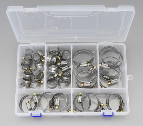 ●材質…バンド:SUS301、スクリュー:スチール●六角(−)ねじ…5/16”(8mm)●ケースサイズ…300×200×62mm〈セット内容〉●EA463CA-20(10個)…バンド幅:12.7mm、適合直径:11〜20mm●EA463CA-27(10個)…バンド幅:12.7mm、適合直径:14〜27mm●EA463CA-44(10個)…バンド幅:12.7mm、適合直径:21〜44mm●EA463CA-57(10個)…バンド幅:12.7mm、適合直径:33〜57mm●EA508MD-5(ケース)
