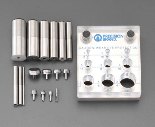 ●サイズ(直径)…1/8”、3/16”、1/4”、5/16”、3/8”、7/16”、1/2”、5/8”、3/4”●能力(板厚)…鉄・真鍮・銅・アルミ・ゴム・プラスチック:0.64mm以下、ステンレス・ハイカーボンスチール・バネ鋼:0.26mm以下●プレートサイズ…89×76×25(H)mm●ケースサイズ…220×105×50mm●総重量…約1.1kg●シム等薄い金属のワッシャー、ガスケットの製作に最適