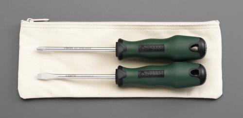 ●2本組●(+)ドライバー…#2×100mm(先端×軸長)●(−)ドライバー…6.0×100mm(先端×軸長)●工具袋付…250×100mm●全長…216.3mm●材質…軸部:クロムモリブデン鋼、ハンドル部:硬質樹脂●先端マグネット付