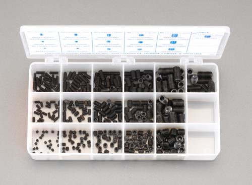●<セット内容>…サイズ、ピッチ(入数):M3×3mm、0.5mm(25)M3×6mm、0.5mm(25)M3×10mm、0.5mm(25)M4×4mm、0.7mm(25)M4×6mm、0.7mm(25)M4×10mm、0.7mm(25)M5×5mm、0.8mm(25)M5×8mm、0.8mm(25)M5×12mm、0.8mm(25)M6×6mm、1.0mm(25)M6×8mm、1.0mm(25)M6×10mm、1.0mm(25)M8×8mm、1.25mm(25)M8×12mm、1.25mm(25)M8×16mm、1.25mm(25)●材質…合金鋼●並目ねじ●ケースサイズ…210×108×40mm●総重量…540g