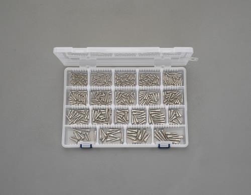 ●<セット内容>…サイズ(入数):2.1×10mm(30)2.1×13mm(30)2.4×10mm(30)2.4×13mm(30)2.4×16mm(30)2.7×13mm(30)2.7×16mm(30)3.1×13mm(20)3.1×16mm(20)3.1×20mm(20)3.5×16mm(20)3.5×20mm(20)3.8×16mm(10)3.8×20mm(10)3.8×25mm(10)4.1×16mm(10)4.1×20mm(10)4.1×25mm(10)4.5×20mm(10)4.5×25mm(10)●材質…真鍮(ニッケルメッキ)●ケースサイズ…275×185×28mm●頭形状…(+)ナベ頭
