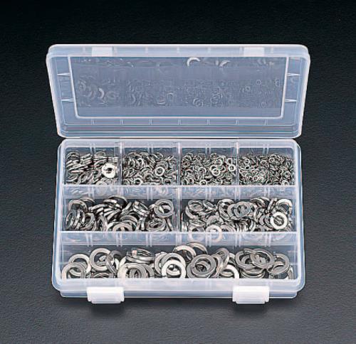 ●<セット内容>呼(入数)/内径×外径×厚み(mm):M3(500)/3.1×5.9×0.7M4(200)/4.1×7.6×1.0M5(150)/5.1×9.2×1.3M6(100)/6.1×12.2×1.5M8(100)/8.2×15.4×2.0M10(50)/10.2×18.4×2.5M12(50)/12.2×21.5×3.0●材質…ステンレス●ケースサイズ…207×145×40mm●総重量…約2000g