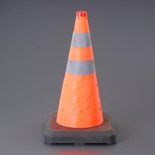 ●光源…LED●電源…単3電池×2本(別売)●点灯パターン…点滅●材質…PVC●サイズ…300×300×500mm●折りたたみ時サイズ…300×300×70(H)mm●重量…2.6kg●カラー…赤●稼働時間…約100時間(単3(容量1,000mAh)×2本使用時)●LEDライト付で暗所でもコーンの位置を確認することができます●視認性抜群な反射バンド付き●ウエイト一体型ですぐに使用可能●折りたたんでコンパクトに収納できます。