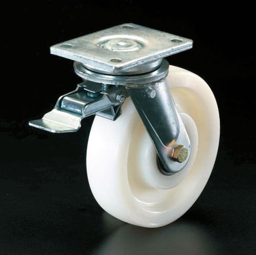 ●仕様…自在前ブレーキ●本体…金具:スチール亜鉛メッキ、車輪:ナイロン6●車輪径×幅…200×50mm●全高…245mm●耐熱温度…-25〜80℃●耐荷重…1250kg●重量…3.9kg●溶接された金具で衝撃に強い高荷重向けの金具付キャスターです●車輪は高荷重・ハイスピードでの使用に耐えられるボールベアリング仕様●自在旋回部内はダブルボールベアリング仕様●耐衝撃性のあるナイロン6製の車輪で、地面を転がる際の抵抗が少ないです●プレート取付け型