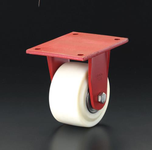 ●仕様…固定●材質…金具:スチール(亜鉛メッキ)車輪:キャストナイロン●車輪径×幅…250×80mm●全高…330mm●耐熱温度…-25〜80℃●耐荷重…6000kg●重量…15.8kg●赤色塗装●車輪は高荷重・ハイスピードでの使用に耐えられるボールベアリング仕様●一般的なナイロンに比べて耐荷重・圧力強度・弾力性・形状復元性に優れており、地面を転がる際の抵抗も少ないです●プレート取付け型