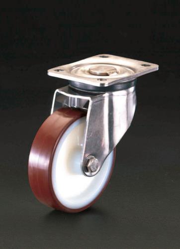 ●仕様…自在ストッパー無●材質…金具:ステンレス、車輪:サーモプラスチックポリウレタン(TPU)●車輪径×幅…100×35mm●全高…130mm●耐熱温度…-25〜70℃●耐荷重…300kg●重量…1.0kg●リムは耐衝撃性のあるナイロン6製●車輪は耐久性・耐食性・防錆に優れたプレーンベアリング仕様(ベアリングなし)●プレート取付け型(耐熱性・耐食性のあるステンレス製)
