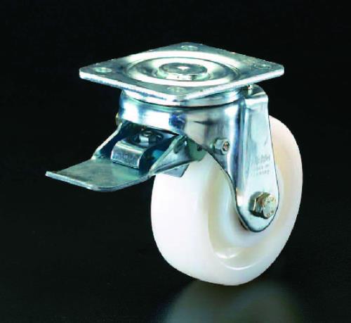 ●仕様…自在後ブレーキ●材質…金具:ステンレス、車輪:ナイロン6●車輪径×幅…150×50mm●全高…190mm●耐熱温度…-25〜80℃●耐荷重…300kg●重量…1.7kg●車輪は耐久性・耐食性・防錆に優れたプレーンベアリング仕様(ベアリングなし)●自在旋回部はダブルボールベアリング仕様●耐衝撃性のあるナイロン6製の車輪で、地面を転がる際の抵抗が少ないです●プレート取付け型(耐熱性・耐食性のあるステンレス製)