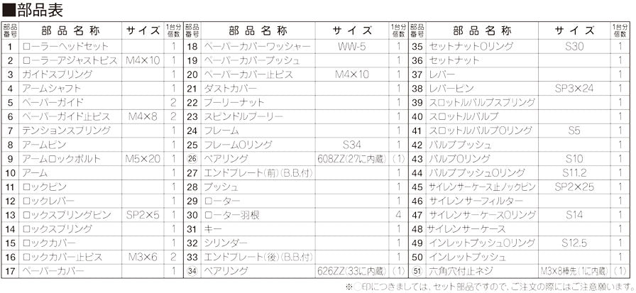 ※パーツリストの画像は共通で使用しています。 (こちらの商品は上記説明文記載内容のものになります)