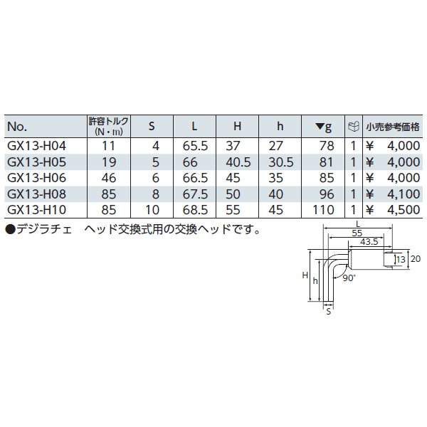 KTC 六角棒ヘッド (スタンダードタイプ) GX13-H04