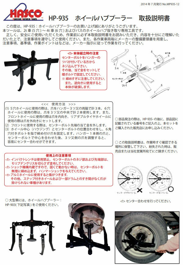 【適合・用途】 対応本体:HP-935 ホイールハブプーラー(2~4t車用) 用途:フロント/リアハブ抜き取り用 交換パーツ(爪)