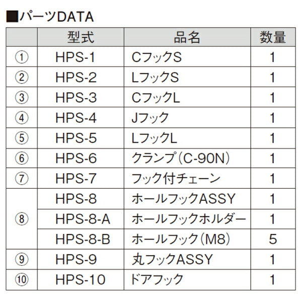 ホールフック(ナット付) 5個入り ホールフックASSY(HPS-8)の消耗パーツ、先端スクリューのみ単品販売(5個入)です 【仕様】 メーカー:KOTO(江東産業株式会社) 品番:HPS-8-B 入数:5個 (補足) HPS-8は、スライドシャフト(スライドハンマーシャフト)HP-Sに接続できる先端工具です
