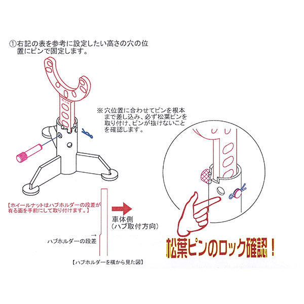 作業する高さに合わせてハブの穴とHS-2840のロースタンドの穴位置に付属のピンを差込固定します